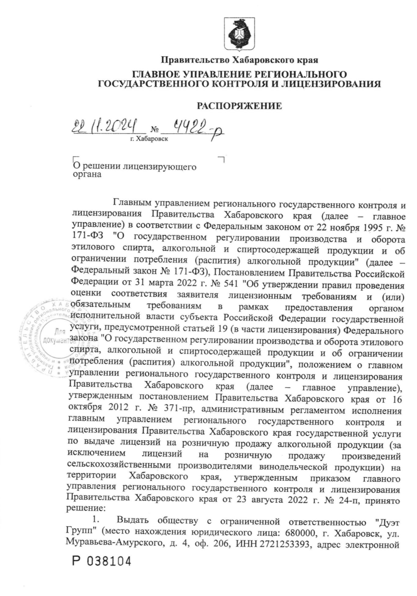 - Лицензия № 27РПО0001611